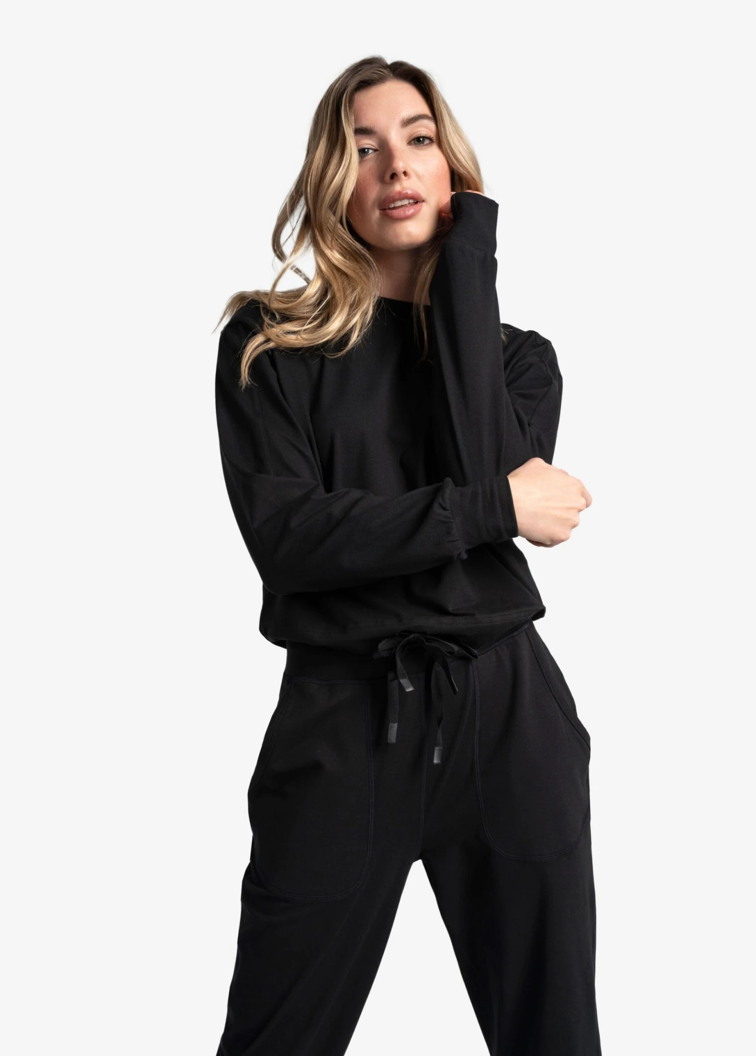 Refresh your cozy basics with this crew neck long sleeve. Made with GRS-certified recycled fibres and a soft brushed handfeel, this modern take on a sweatshirt transforms effortlessly into a cropped silhouette by folding the hem inside.